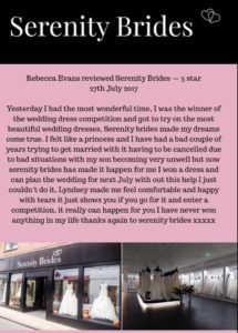 Rebecca, you were a lovely customer and a very deserving winner – have a great wedding xx